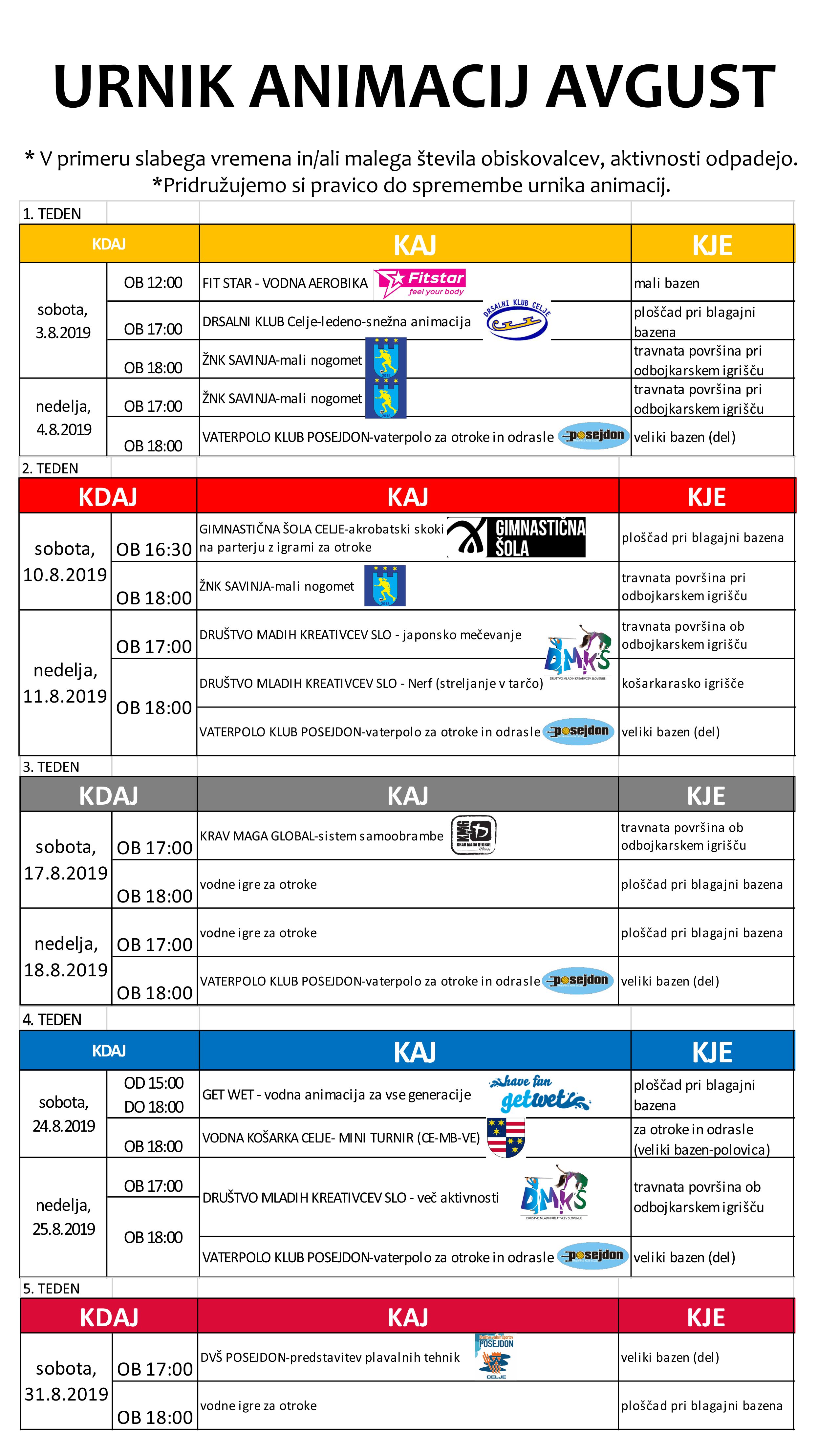 *Pridružujemo si pravico do spremembe urnika animacij zaradi velikega števila sodelujočih.