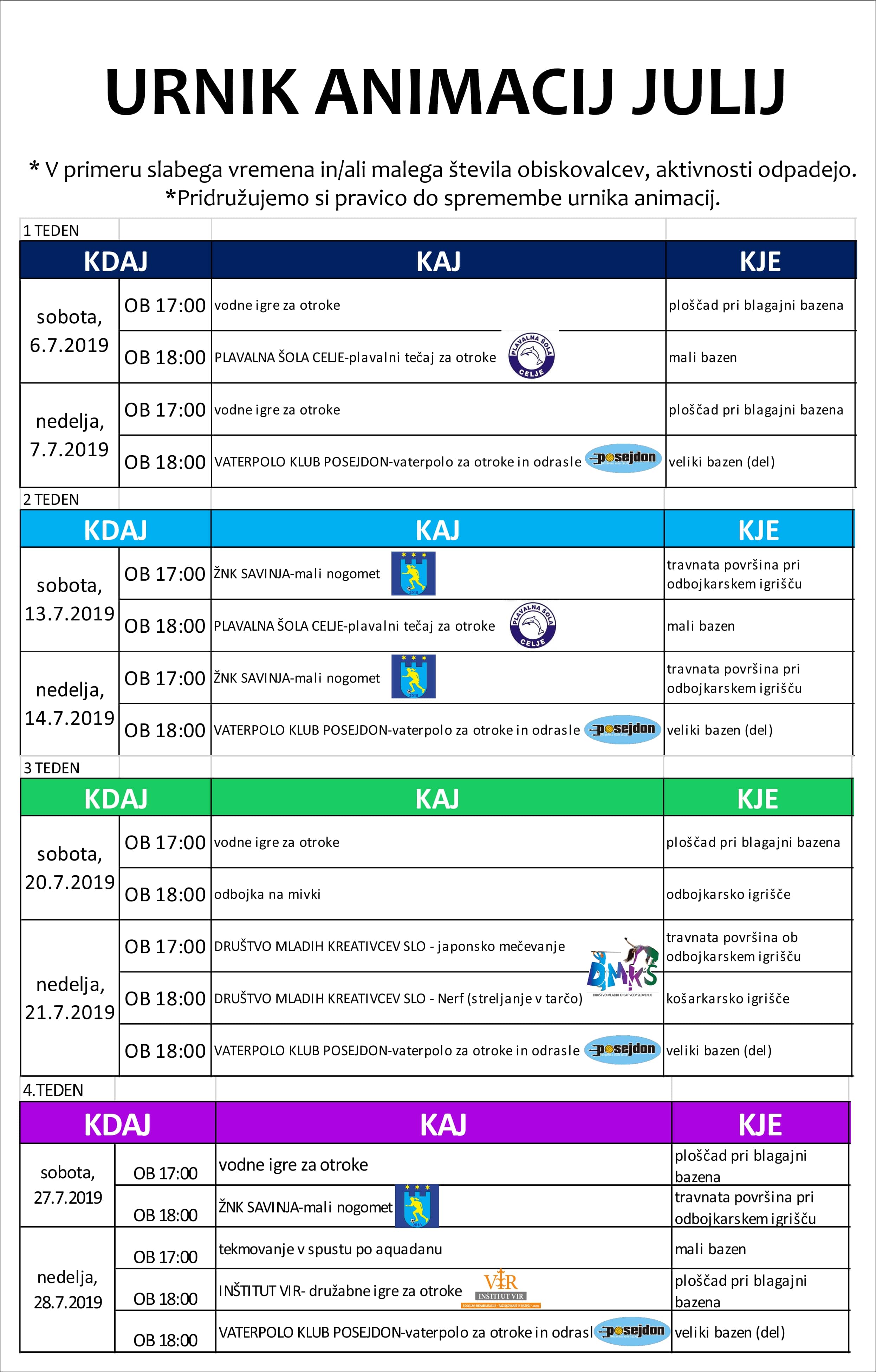 *V primeru slabega vremena in/ali majhnega števila obiskovalcev aktivnosti odpadejo.