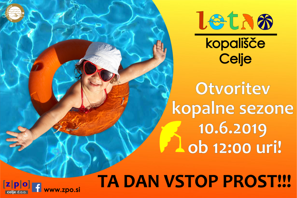 Letno kopališče Celje svoja vrata odpira v ponedeljek, 10.6.2019 ob 12:00. Ta dan je VSTOP BREZPLAČEN!!!