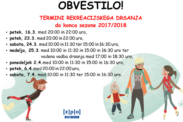 Udeležite se enega izmed terminov rekreacijskega drsanja do konca sezone 2017/2018!