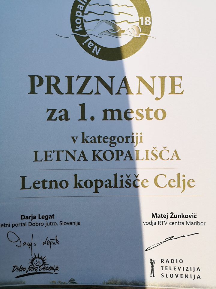 Letno kopališče Celje je letos že tretjič osvojilo 1. mesto v kategoriji letnih kopališč v akciji Naj kopališče. Hvala vsem, ki ste zanj glasovali. Več na: celje.info