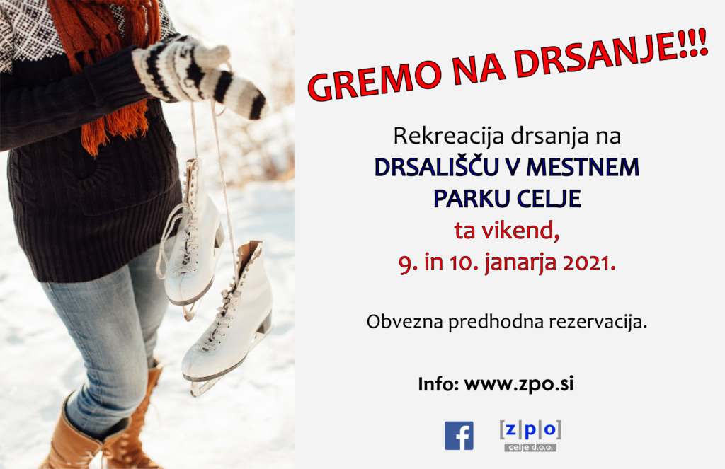 Ob delnem sproščanju vladnih ukrepov na področju športa, bomo ta vikend, v soboto, 9.1.2021 in nedeljo 10.1.2021, lahko drsali.